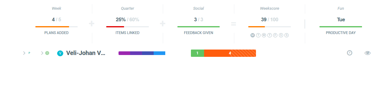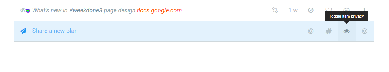You wanted it, we made it happen! You are now able to add personal items visible only to you, which lets you use Weekdone as a lightweight task manager. Just click the eye icon to make an item private when adding it. You can make it public later on. It's great for jotting down notes and ideas.