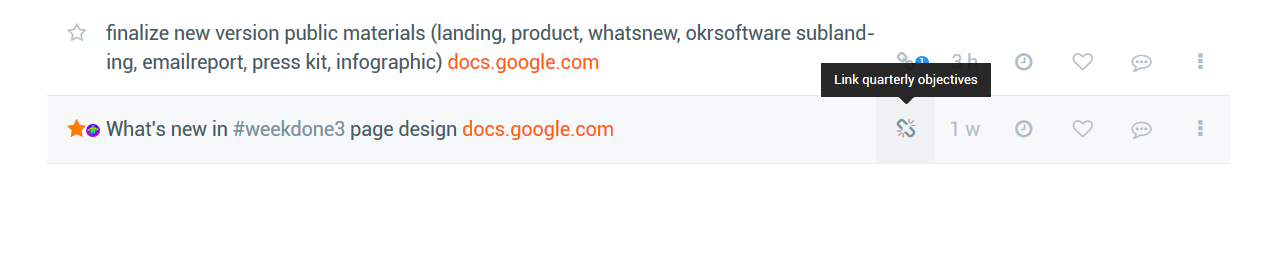 All your weekly items should contribute to your long-term objectives. The new prominent link icon now shows as the first action for each item.