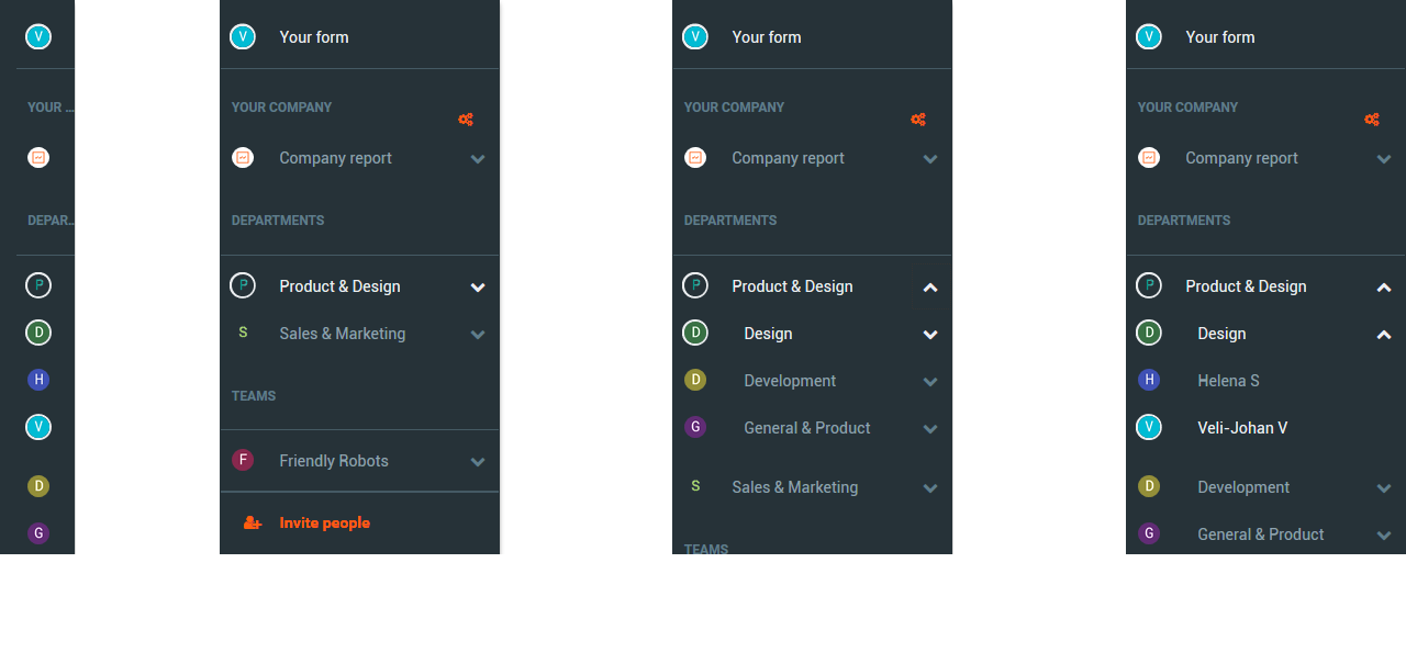 You can now use the sidebar to switch between your own items, the full Company Report, any teams, departments ,and other people.