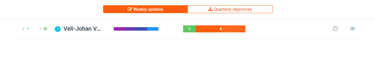 It's now quick and easy to switch between your two main sections - weekly updates and quarterly objectives - from the top header.